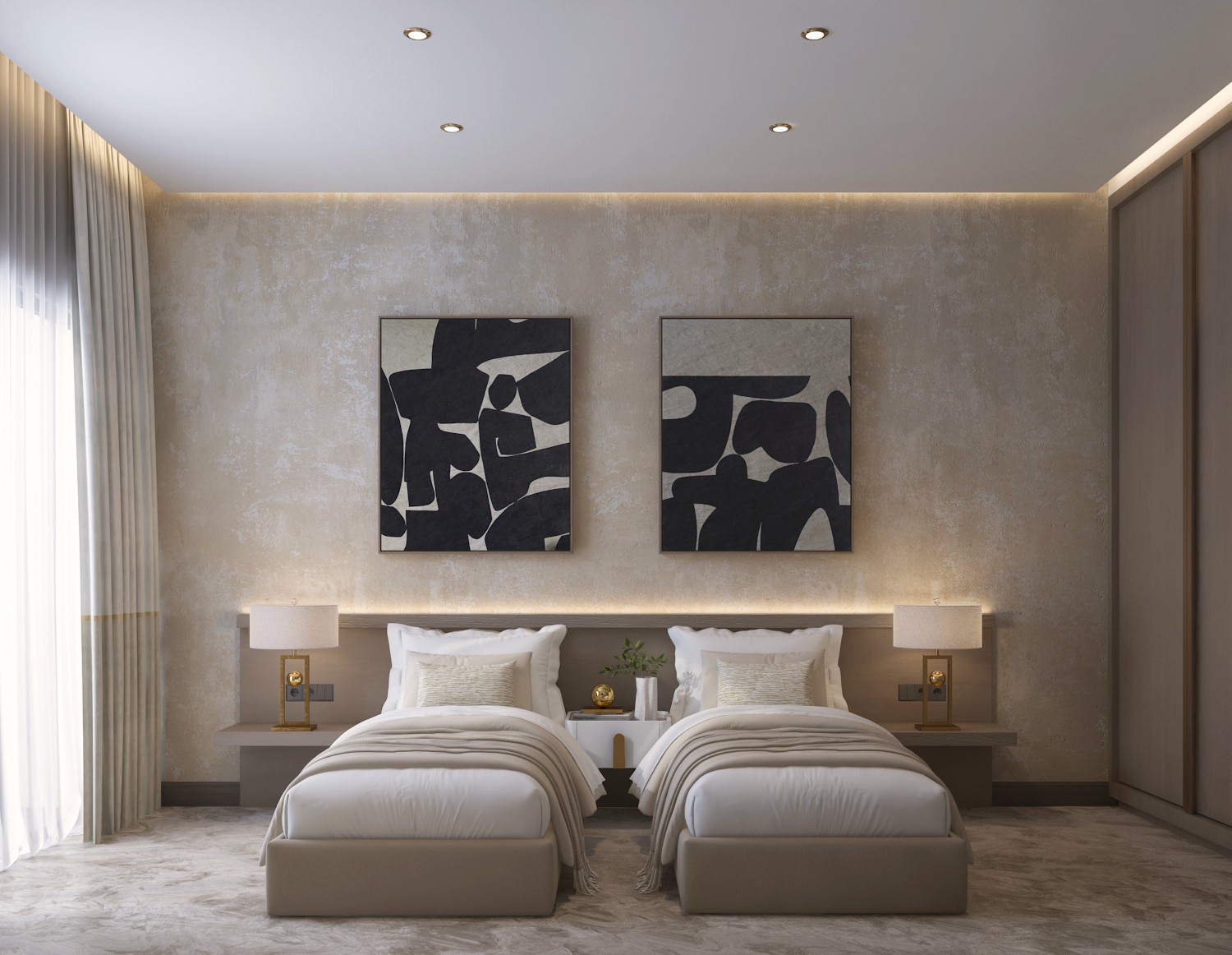 جناح فندقي يضم غرفة نوم بسريرين بالإضافة إلى صالون منفصل، يوفر مساحة أكبر وتجربة إقامة أكثر رفاهية.